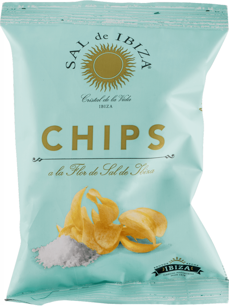 Lahodné lupienky, ručne vyprážané na najjemnejšom slnečnicovom oleji, vyrobené z aromatickej odrody zemiakov Agria s jemnou Fleur de Sel, slávnou soľou z Ibizy.